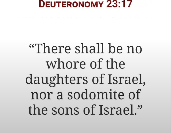“There shall be no whore of the daughters of Israel, nor a sodomite of the sons of Israel.”